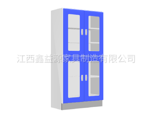 全木結(jié)構(gòu),整體采用16mm厚實(shí)驗(yàn)室優(yōu)質(zhì)E1級環(huán)保型顆粒板,數(shù)控下料機(jī)開料,保證了各版塊的尺寸精準(zhǔn),各版塊周邊采用三聚氰胺粘貼,開孔機(jī)精準(zhǔn)測算開孔,整體由三合一拼裝而成。門框采用采用上下對開門,門板內(nèi)經(jīng)開槽嵌5mm厚可視玻璃,門板湖藍(lán),拉手采用10公分鋁合金一字拉手,層板設(shè)置為活動模式,方便抽拿、清理。